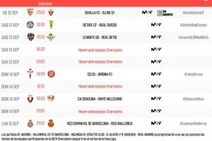注:马竞vs比利亚雷亚尔、巴萨vs瓦伦西亚、毕尔巴鄂vs阿拉维斯、皇家社会vs皇马比赛的安排将根据欧冠赛程公布